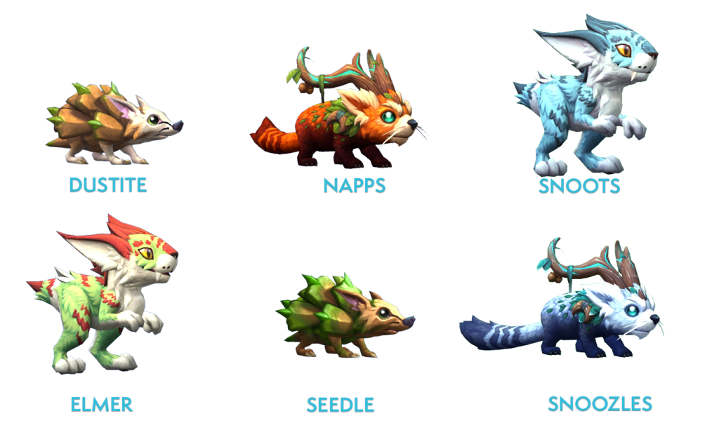 Dustite | Elmer | Napps | Seedle | Snoots | Snoozles